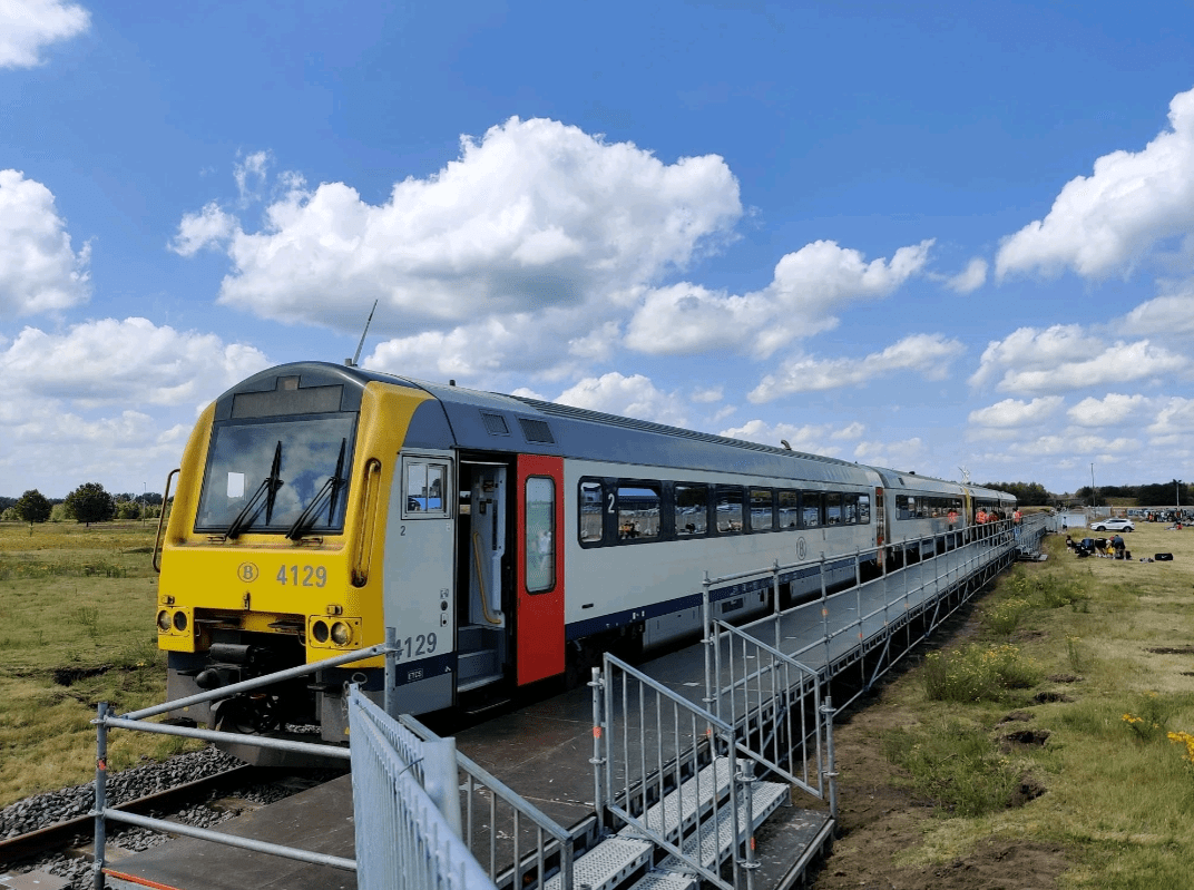 Autorails de la série 41 au plus près de l'entrée du festival - Crédit photo : SNCB En ce jour de rentrée scolaire, petite anecdote estivale :Pour le festival Rampage à Lommel (début juillet), la SNCB a créé une halte ferroviaire provisoire de toutes pièces. Concrètement, un quai temporaire a été installé en utilisant une … Lire la suite Une halte SNCB provisoire pour desservir un festival
