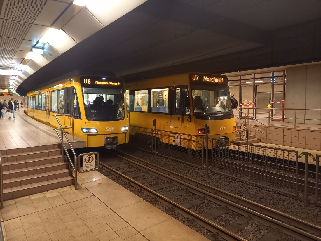 Station Hauptbahnhof sur une section à double écartement. Au premier plan, le quai bas desservi par les tram touristiques Une voie à 3 rails (double écartement) desservant des quais particulièrement hauts ? Nous sommes bien sur le réseau de Stuttgart.C'est ce qu'il reste de la conversion progressive du réseau historique de tram "Strassenbahn" en métro … Lire la suite Un réseau à double écartement à Stuttgart