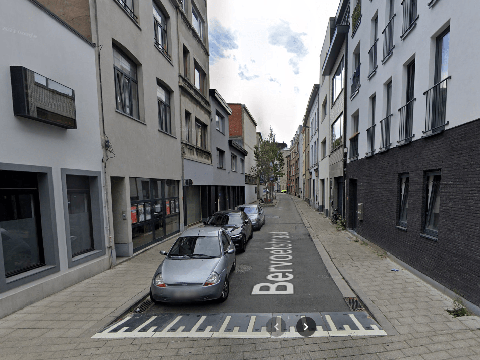 Un autre exemple de rue scolaire, observé à Anvers, Bervoetstraat, sur les 3e et 4e photos. Le avant-après reste marquant même si l’aménagement est moins esthétique.