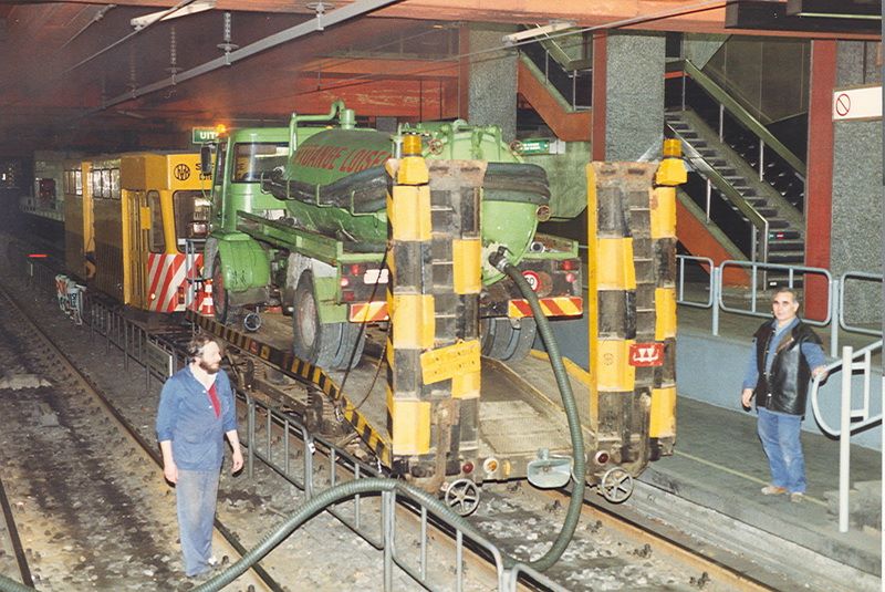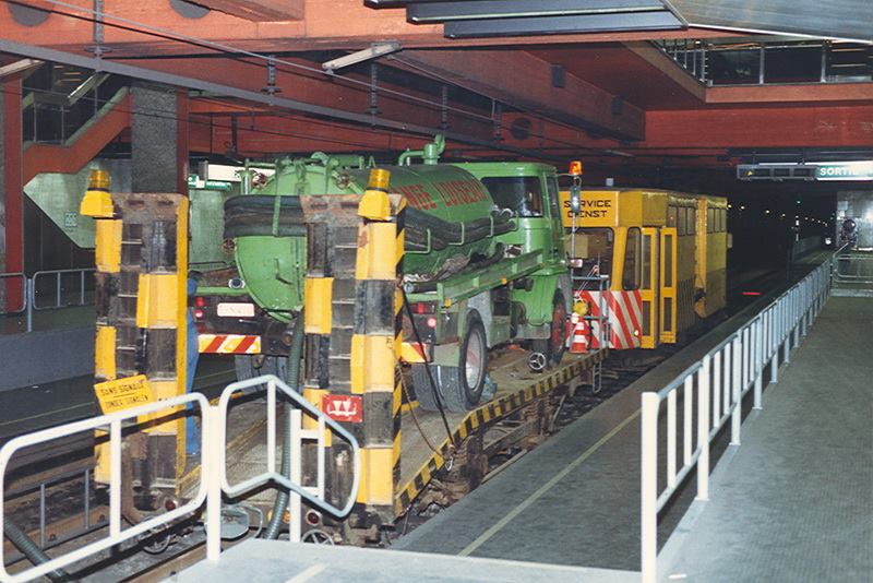 Pendant une dizaine d’années, la solution adoptée fut pour le moins insolite : une fois par mois, un camion vidangeur était descendu de nuit dans les tunnels pour vidanger les fosses. Celui-ci était chargé sur une remorque de service (wagon n°144 pour le pré-métro et n°87 pour le métro).