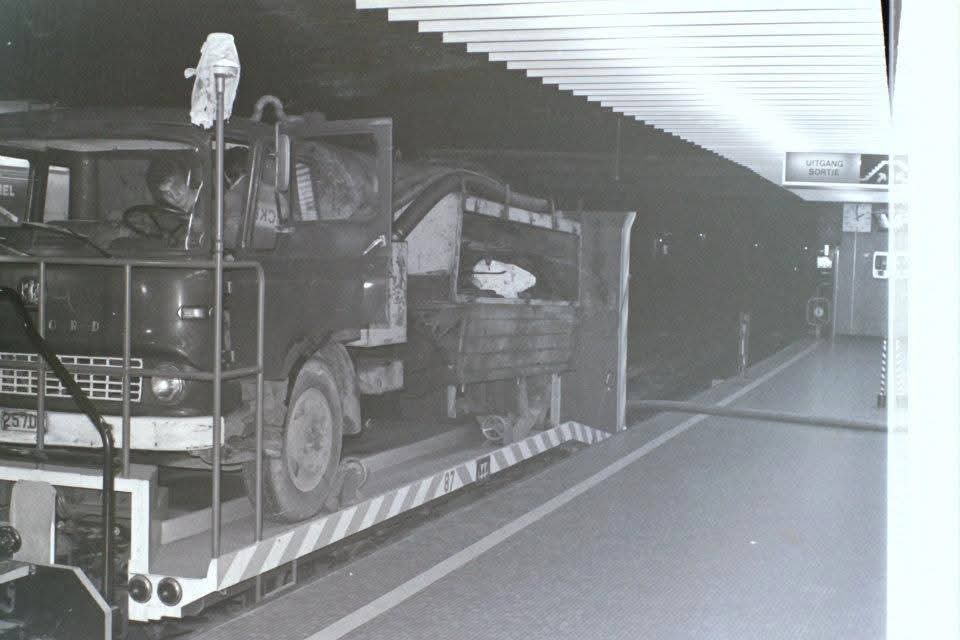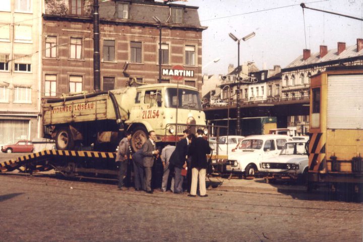 Les premiers essais de chargement du camion auraient été réalisés à la place Sainctelette vers 1975.