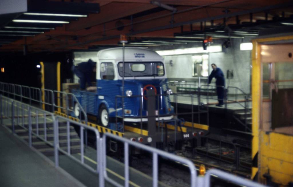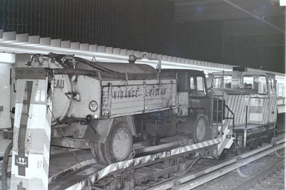 C’est la société Vidange Loiseau, reconnaissable à ses camions verts, qui assurait cette mission, offrant au passage des scènes pour le moins inhabituelles. Les motrices/trams de service n°38 et 40 étaient chargés d’acheminer le convoi. Ces mêmes véhicules servaient également au ramassage des poubelles dans les stations (voir l’article dédié).