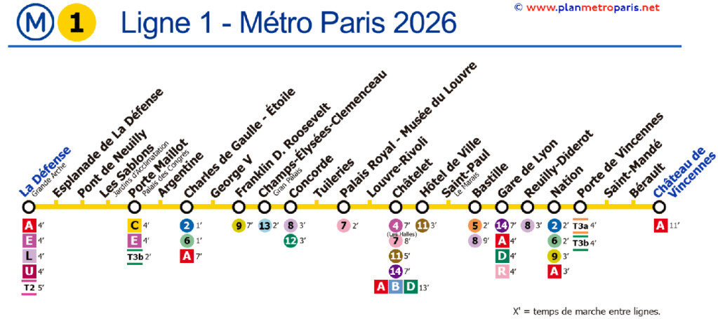 Support visuel qui montre l’ensemble du parcours et des arrêts d’une ligne (= schéma de la ligne)