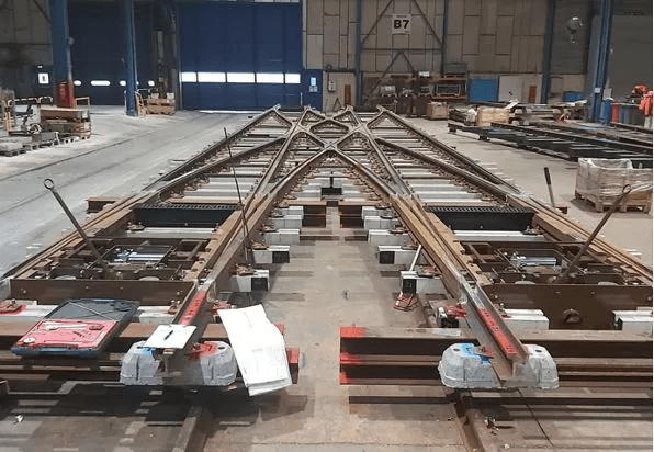 Ensemble de voies et d’aiguillages dans une zone.
